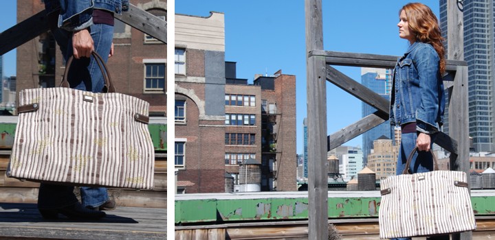 Make weekend duties a stylish affair with our Utility Tote. Take it to the farmer’s market, the laundromat or on overnight trips, this oversized tote also makes the ultimate beach bag. It’s also the perfect car trip bag – simply throw in last minute items you forgot to pack or need immediate access to! Made of our heavy weight canvas treated with a water resistant finish, this bag has 2 side snaps, a rigid, removable bottom and 5 metal feet. Darn-knit and Zigzag versions have straps on the side. It’s a remarkably practical and indispensable tote!
